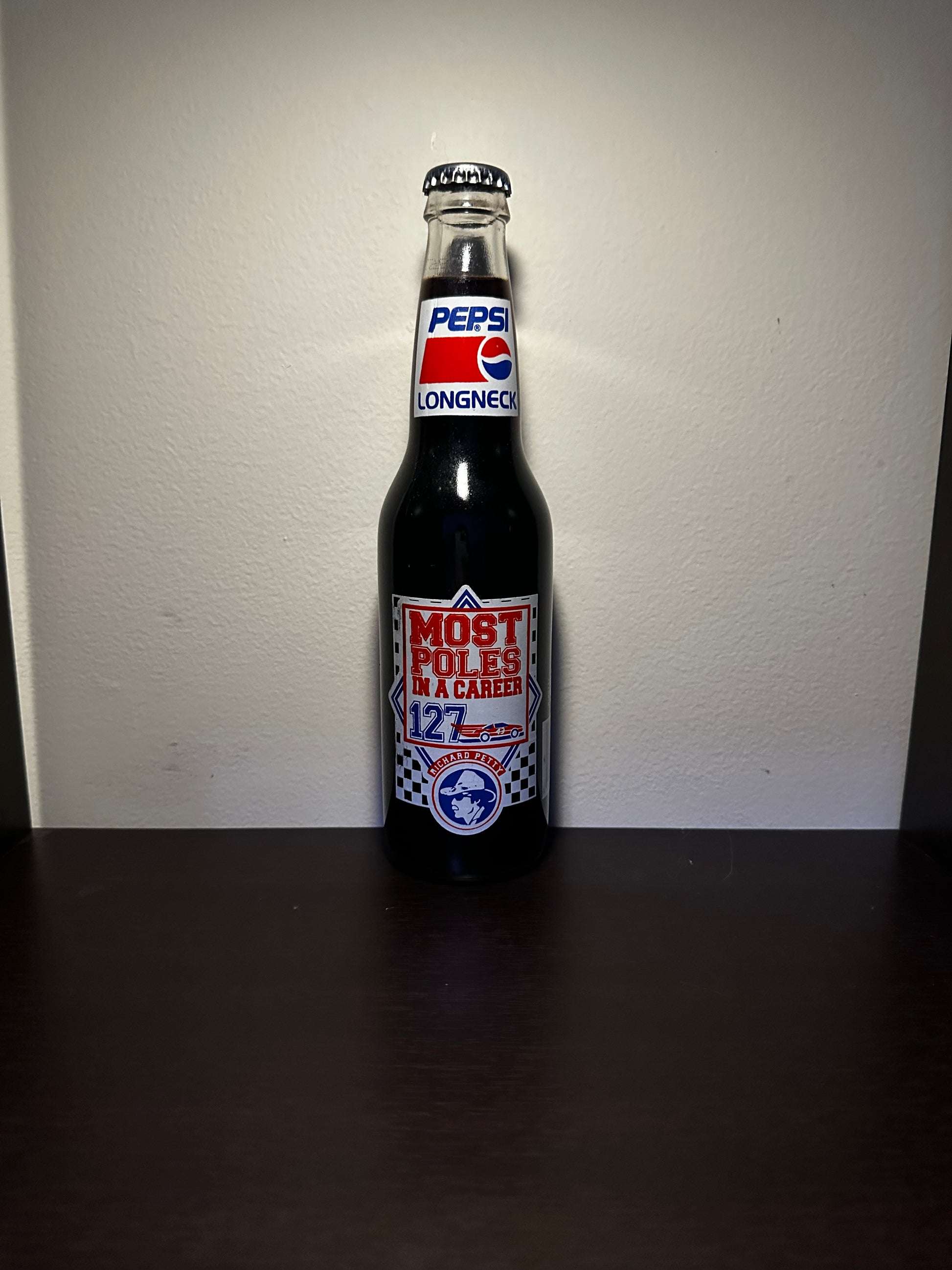Some vintage Richard Petty Pepsi Longnecks from the 90s. All 5 of these bottles correspond with his accomplishment of most poles in any career. The bottles are in great condition, very clear and detailed graphics. You can purchase each bottle individually, or all 5 at a discount and including an empty bottle!